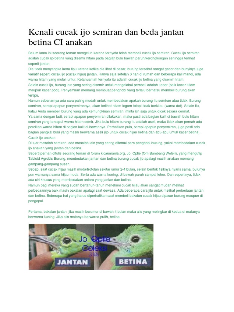 Jenis Cucak Ijo Dan Perbedaan Ciri Cirinya Beserta Harga Pasarannya Memelihara cucak ijo memang menyenangkan karena suara kicauannya sangat merdu dan bervariasi.